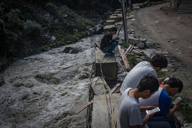 Các nhân viên khai mỏ chơi game trên điện thoại và xem các chương trình truyền hình ở gần khu khai mỏ.